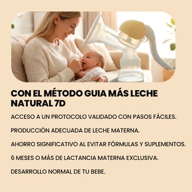 Método Guia Más Leche Natural 7D es un protocolo validado con técnicas simples para aumentar tu producción de leche, amamantar exclusivamente y crear tu banco para volver al trabajo.